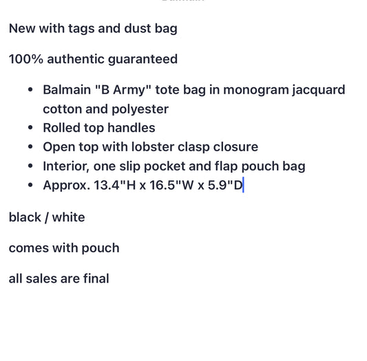 Balmain B Army Medium Shopper Tote Bag in Monogram Jacquard new