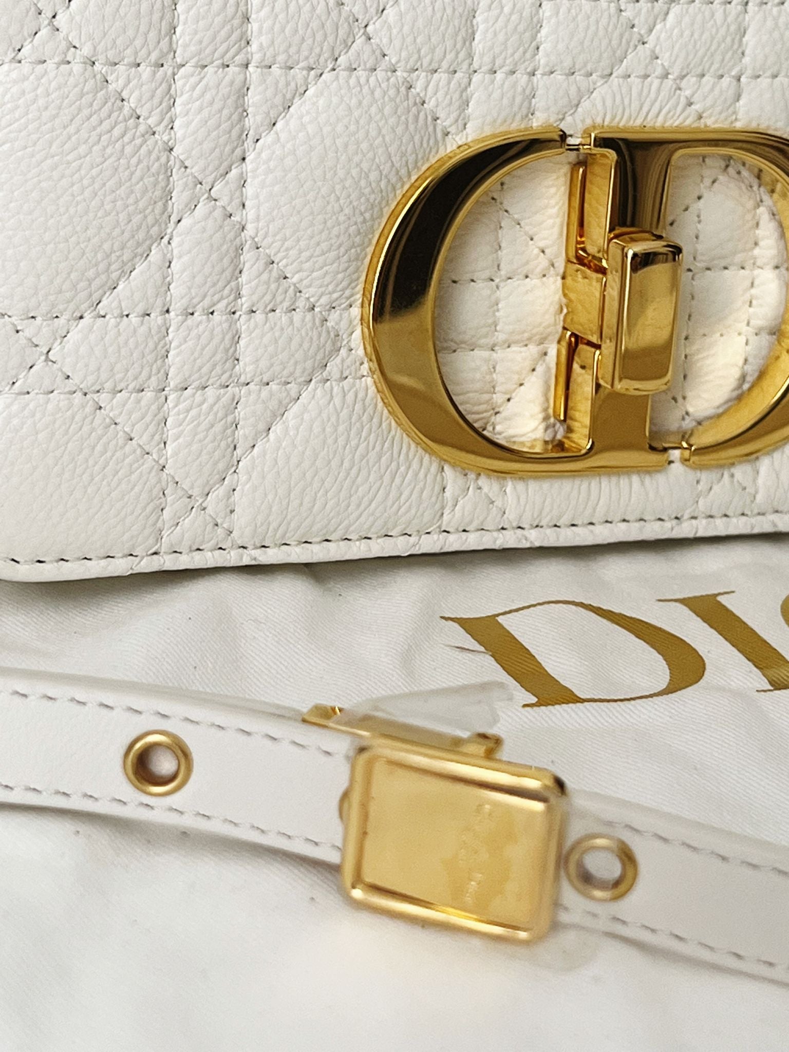 - Adjustable, removable CD chain link strap with Christian Dior military-inspired buckle